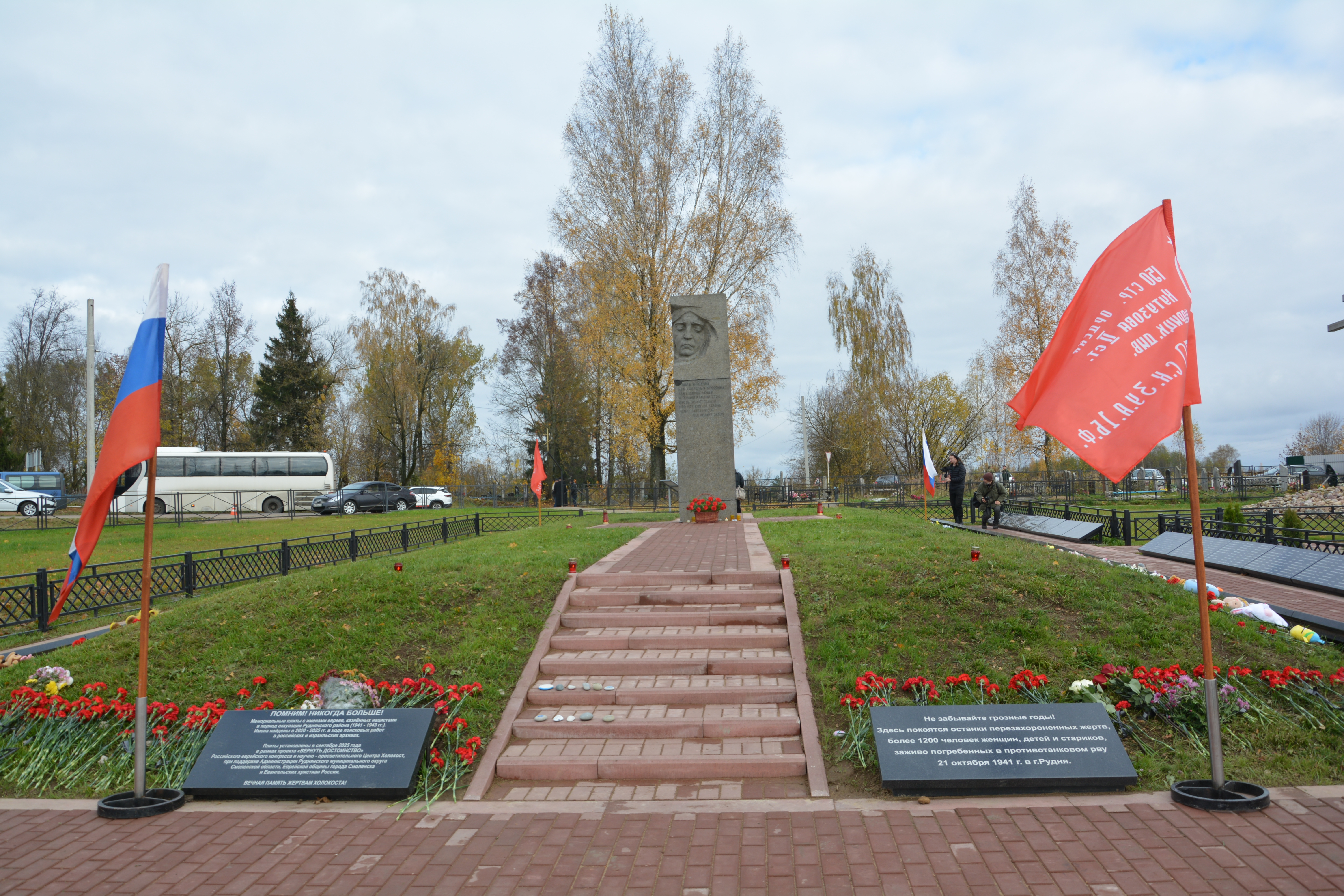 Фашисты убивали мирных жителей не только здесь, но и на Бутровском кладбище, в плодопитомнике, в Гранках, в Любавичах... А деревни Шарино и Марково стали руднянской Хатынью - их жителей заживо сожгли каратели. Пепел сожженных людей стучит в сердца живых - услышьте этот стук.