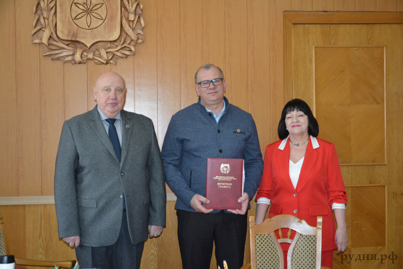 Также Юрий Иванович и Людмила Никифоровна тепло поздравили с юбилеем депутата Руднянского окружного Совета депутатов Цыбина Николая Леонидовича и вручили ему Почетную грамоту муниципального образования «Руднянский муниципальный округ» Смоленской области за многолетний добросовестный труд и успехи в работе.