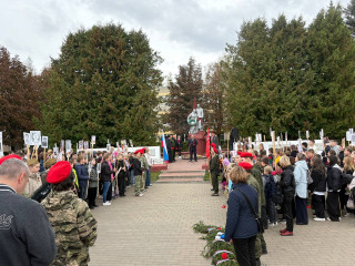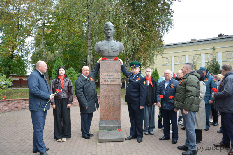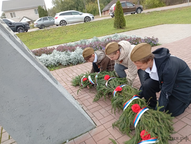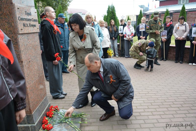 Память павших защитников Родины почтили Минутой молчания. В городе Рудне цветы и венки возложили к Братским могилам, Стене Героев и бюсту нашего земляка, знаменосца Великой Победы, Героя Советского Союза Михаила Алексеевича Егорова.