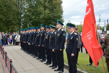 Со словами благодарности в адрес участников Великой Отечественной войны, тружеников тыла и поздравлений в адрес жителей к участникам мероприятия обратились заместитель министр природных ресурсов и экологии Смоленской области Романовская Вероника Михайловна, начальник Пограничного управления ФСБ России по Смоленской области, полковник Кайгородов Александр Вячеславович.