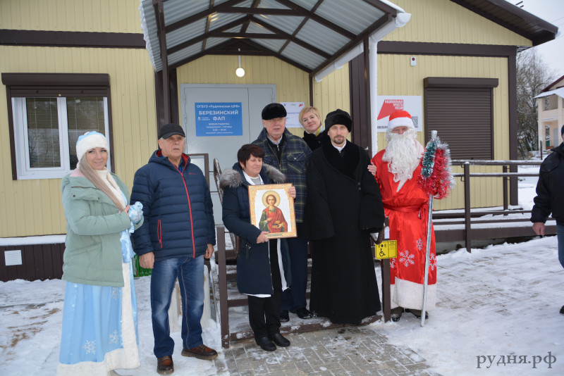Обряд освящения нового дома совершил Благочинный Руднянского округа иерей Алексий Колесников. Кроме того, отец Алексий подарил ФАПу икону.