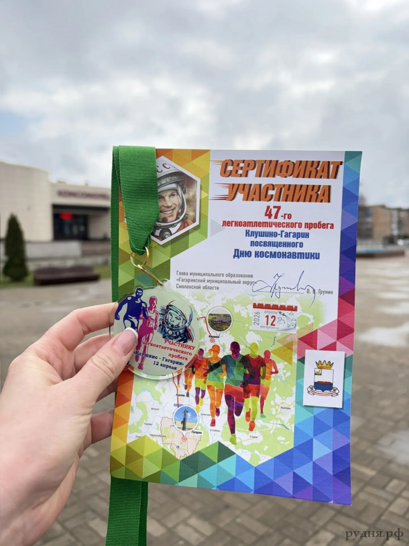 Руднянки приняли участие в 47-м легкоатлетическом пробеге "Клушино-Гагарин", посвященном 65-летию полета Юрия Алексеевича Гагарина в космос