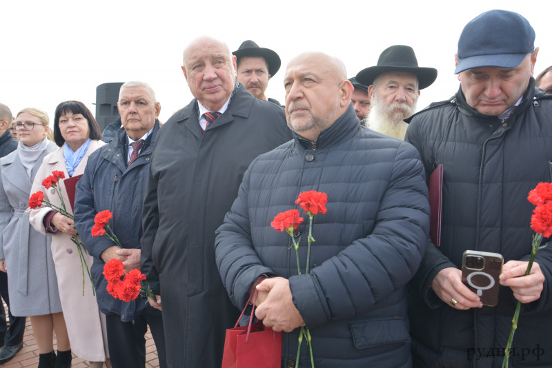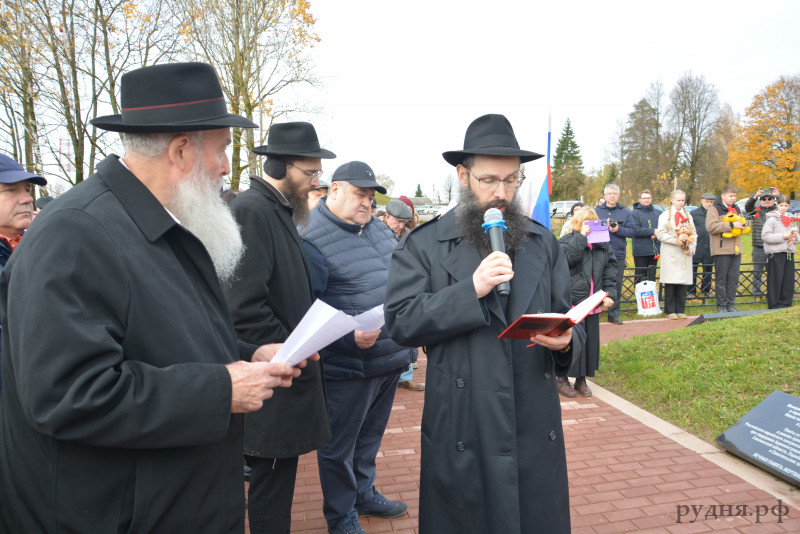 В митинге приняли участие Глава муниципального образования Руднянский район Смоленской области Ивашкин Юрий Иванович, Председатель Руднянского окружного Совета депутатов Людмила Никифоровна Дивакова, депутат Смоленской областной Думы Евгений Иванович Максименко, Руководитель объединения хасидов СНГ «Хабад-Любавич» Исаак Абрамович Коган; Главный Раввин г.Смоленска и Смоленской области Леви Ицхак Мондшайн; Раввин из Израиля Иегуда Раскин, Раввин Любавичской синагоги Гавриель Гордон; вице-президент по развитию некоммерческой организации Благотворительный Фонд «Российский Еврейский Конгресс» Михаил Яковлевич Бройтман; президент по развитию некоммерческой организации Благотворительный Фонд «Российский Еврейский Конгресс» Александр Юрьевич Генцис; председатель и попечитель еврейской общины г.Мытищи, член директоров некоммерческой организации Благотворительный Фонд «Российский Еврейский Конгресс» Борис Маркович Гурович, жители Руднянского округа, руководители предприятий и организаций округа, учащиеся образовательных учреждений, родственники погибших мирных жителей в годы Великой Отечественной войны.