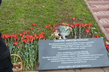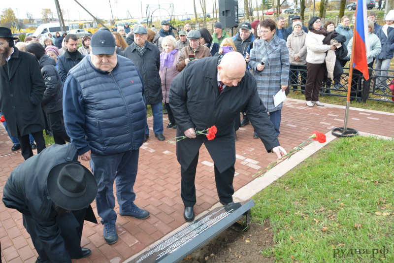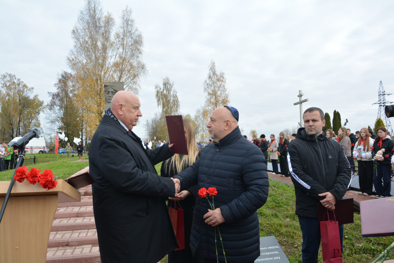 Присутствующие возложили цветы и поминальные камни. Ежегодно, 21 октября, на этом памятном месте будет проводиться памятное мероприятие «Реквием памяти» и произносить поминальную молитву обо всех расстрелянных, замученных, ни в чем не повинных мирных жителях, погибших от рук фашистских палачей.
