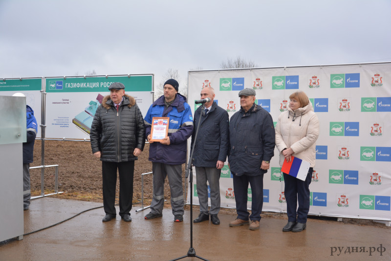 Глава округа Юрий Иванович Ивашкин за участие в газификации древни Любавичи вручил заслуженные награды сотрудникам «Газпром газораспределение Смоленск». Благодарственными письмами Руднянского муниципального округа награждены:
