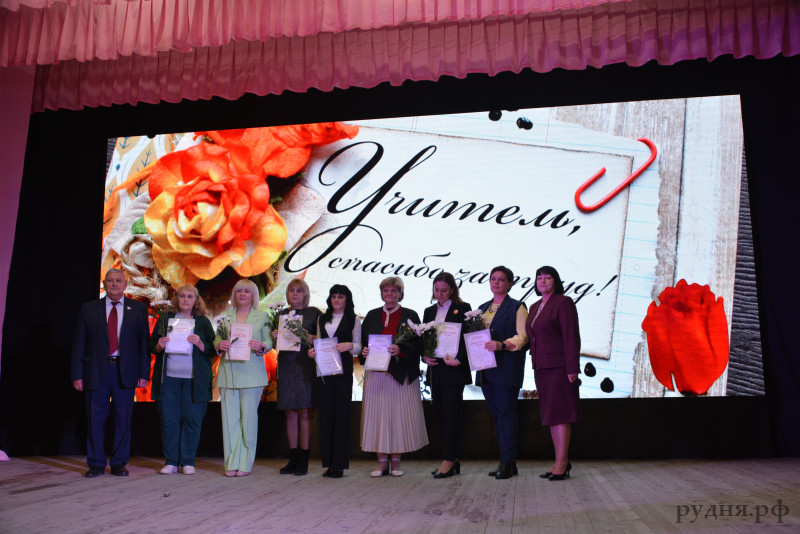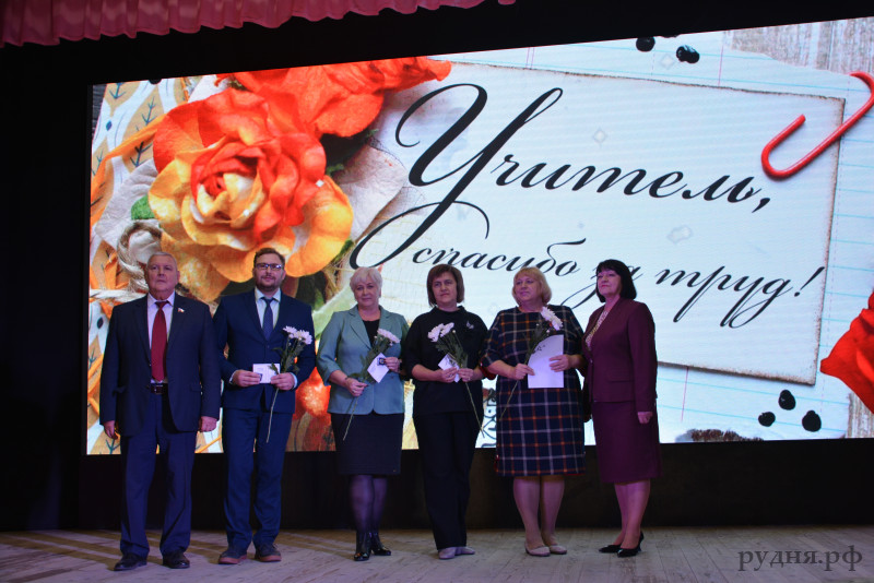 В преддверии праздника в Руднянском городском Доме культуры состоялось праздничное мероприятие, посвященное дню учителя. В мероприятии приняли участие председатель Руднянского окружного Совета депутатов Людмила Никифоровна Дивакова, председатель Смоленского областного объединения организаций профсоюзов, депутат Смоленской областной Думы Евгений Иванович Максименко, начальник отдела образования Ольга Геннадьевна Зуева, благочинный Руднянского церковного округа иерей Алексий Колесников.