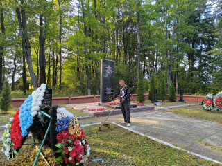 В Руднянском округе продолжается работа по уборке и благоустройству воинских и братских захоронений, памятников советским воинам – освободителям