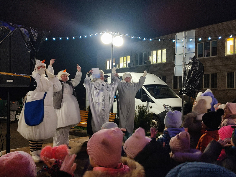 Сегодня на благоустроенной набережной в городе Рудне состоялось торжественное открытие новогодней ёлки. Под аплодисменты зрителей зажглись огни, а вместе с ними — улыбки на лицах детей и взрослых. Зима, Медведь, Заяц и Снеговик задавали ритм танцам и заряжали всех праздничным настроением. Дети и сказочные герои водили вокруг ёлки хороводы, пели песни и играли в весёлые игры. А Дед Мороз и Снегурочка угощали ребятишек сладостями.